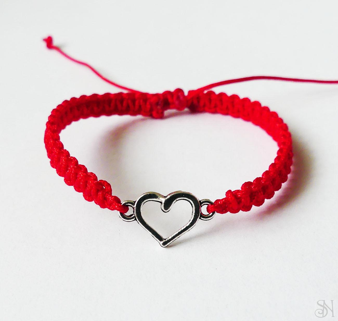 Červený náramok vyrobený zo šnúrky s kovovým príveskom bez obsahu niklu. Praktické posuvné makramé zapínanie - náramok sa roztiahne a stiahne podľa potreby.