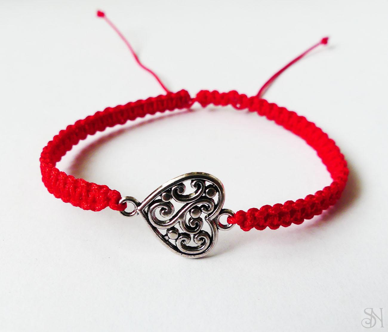Červený makramé náramok so srdcom