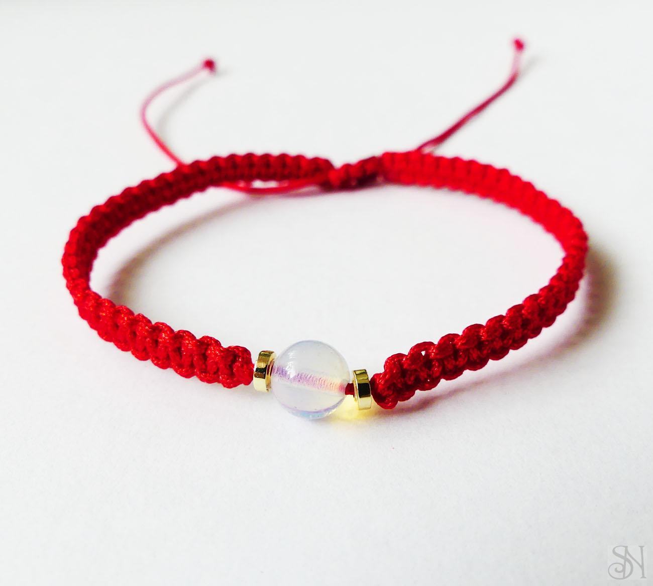 Červený pletený náramok vyrobený zo šnúrky s liečivými kameňmi hematitom a opalitom. Praktické posuvné makramé zapínanie - náramok sa roztiahne a stiahne podľa potreby.