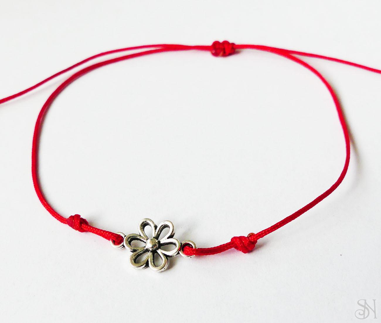 Úvod » Náramky » Červený tenký ochranný náramok proti urieknutiu s kvetom