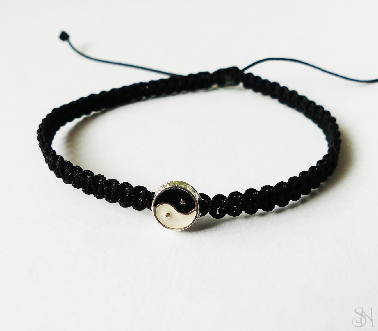 Čierny náramok vyrobený zo šnúrky s kovovým príveskom bez obsahu niklu. Praktické posuvné makramé zapínanie - náramok sa roztiahne a stiahne podľa potreby.