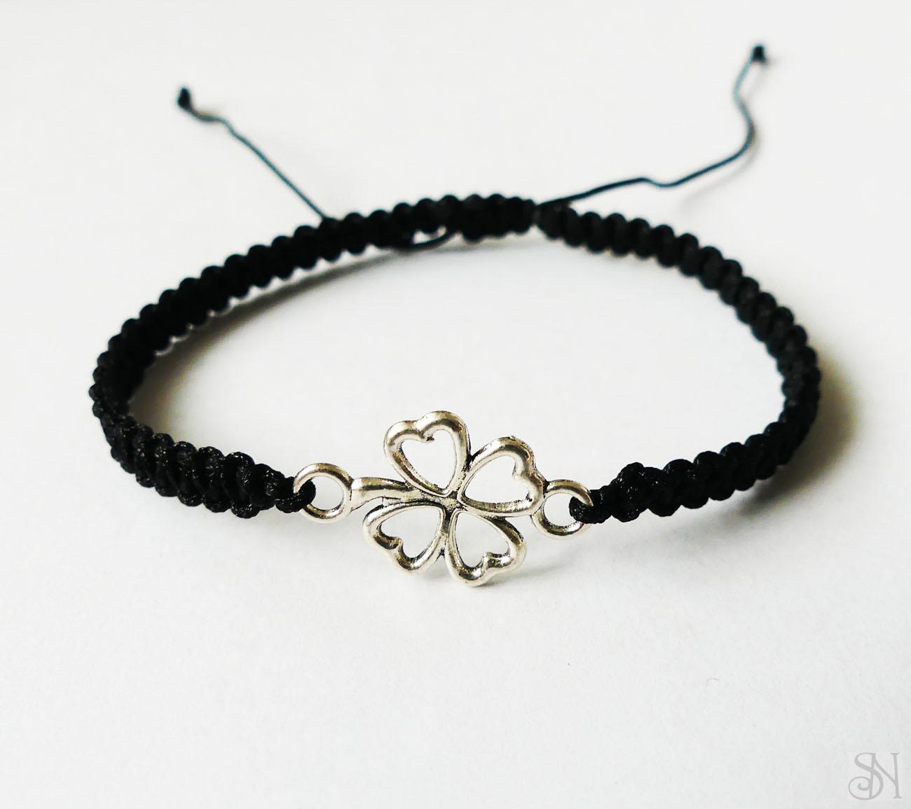 Úvod » Náramky » ˇČierny makramé náramok so štvorlístkom