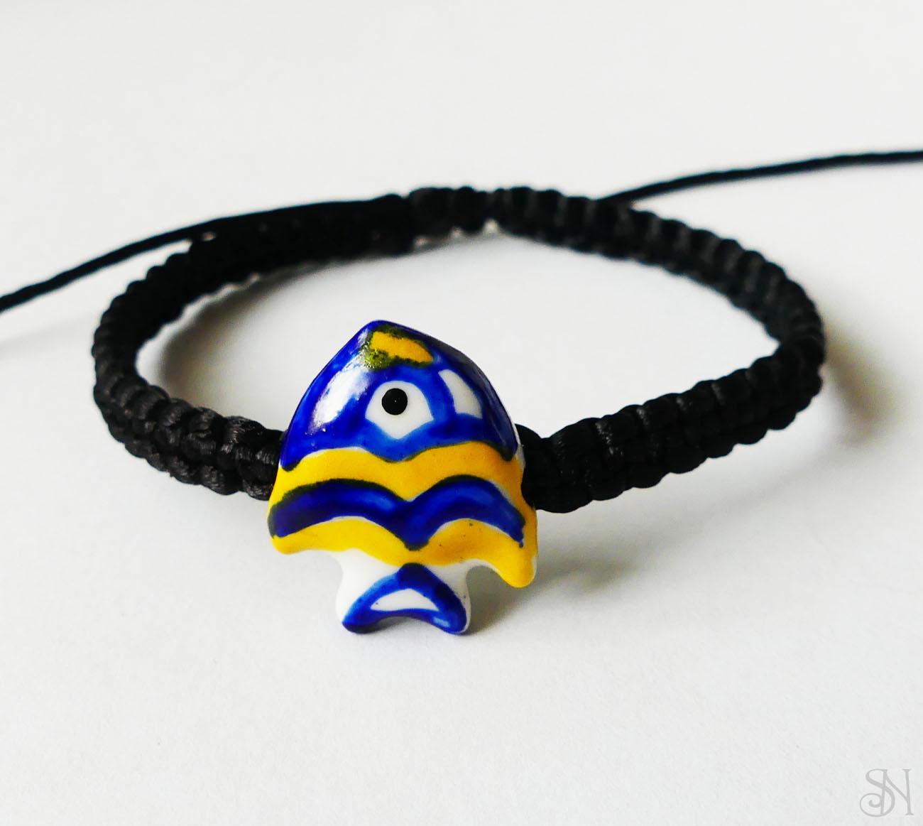 Úvod » Náramky » Čierny náramok s keramickou rybou