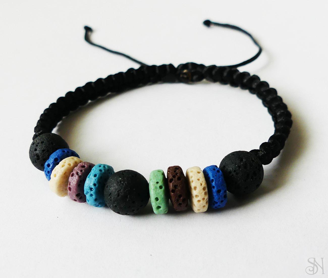 Čierny pletený náramok vyrobený zo šnúrky s lávovými kameňmi. Praktické posuvné makramé zapínanie - náramok sa roztiahne a stiahne podľa potreby.