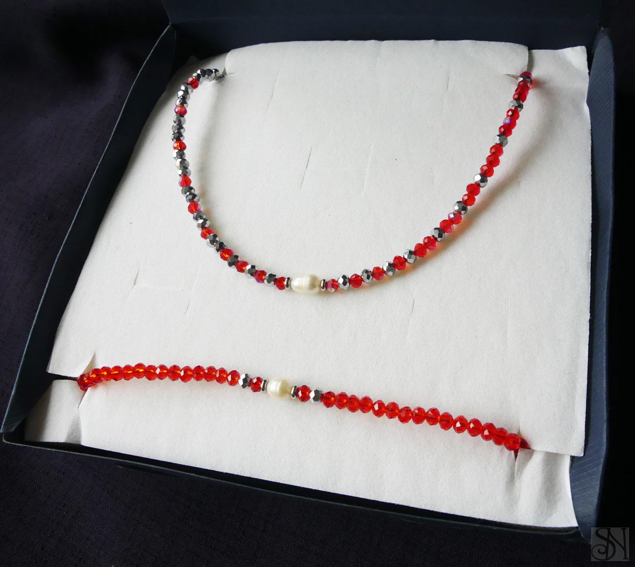 Úvod » Sady šperkov » Darčeková sada červených perlových šperkov z v krabičke