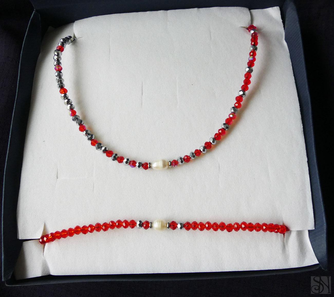 Darčeková sada červených perlových šperkov z v krabičke