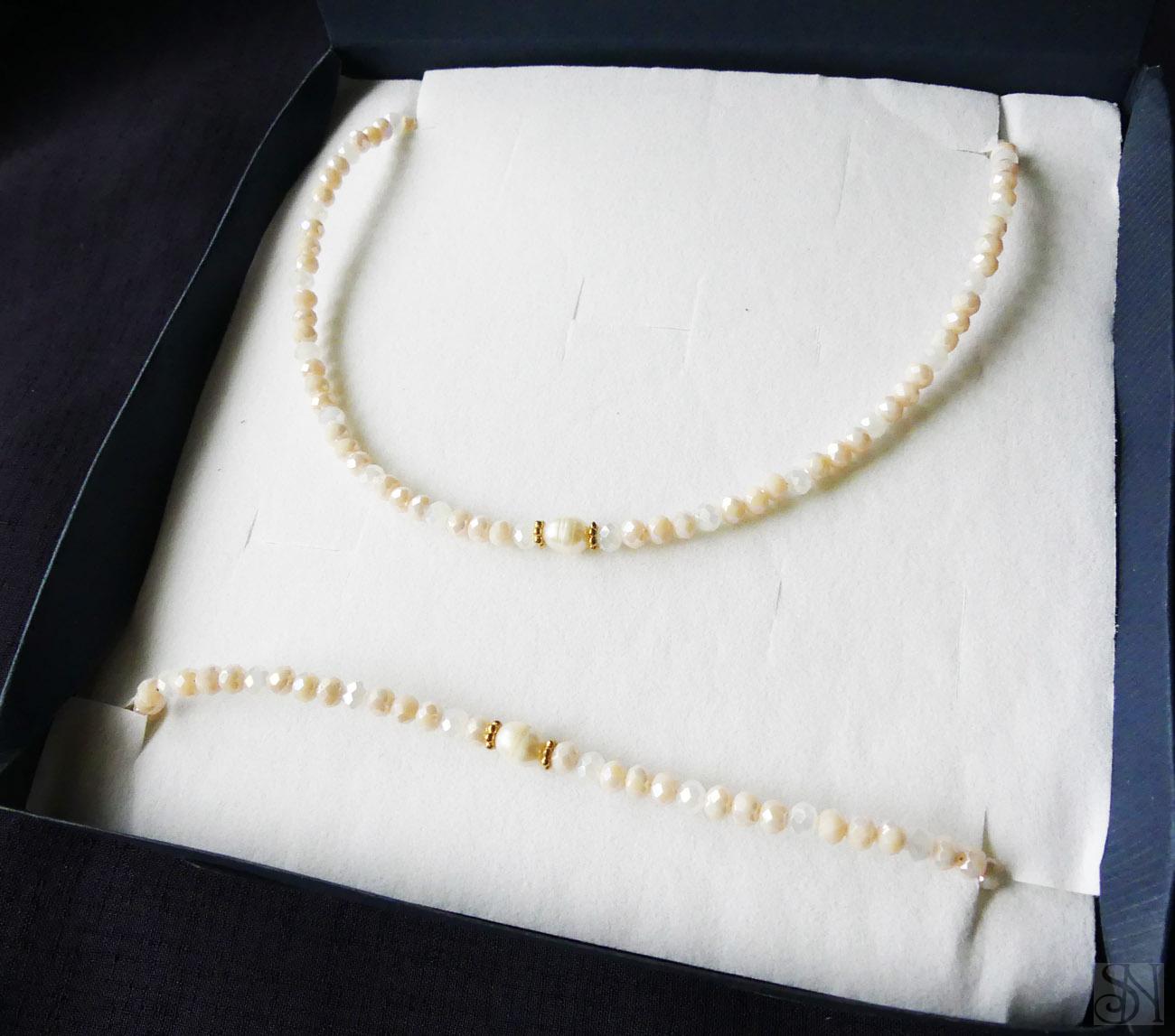 Ručne robená sada šperkov - korálkový náramok a náhrdelník s chirurgickou oceľou