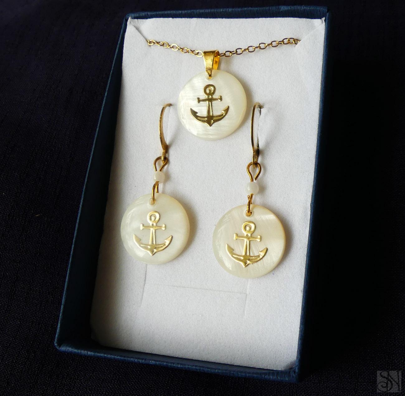 Darčeková sada šperkov - Kotvy z perleťových korálok a chirurgickej ocele v krabičke