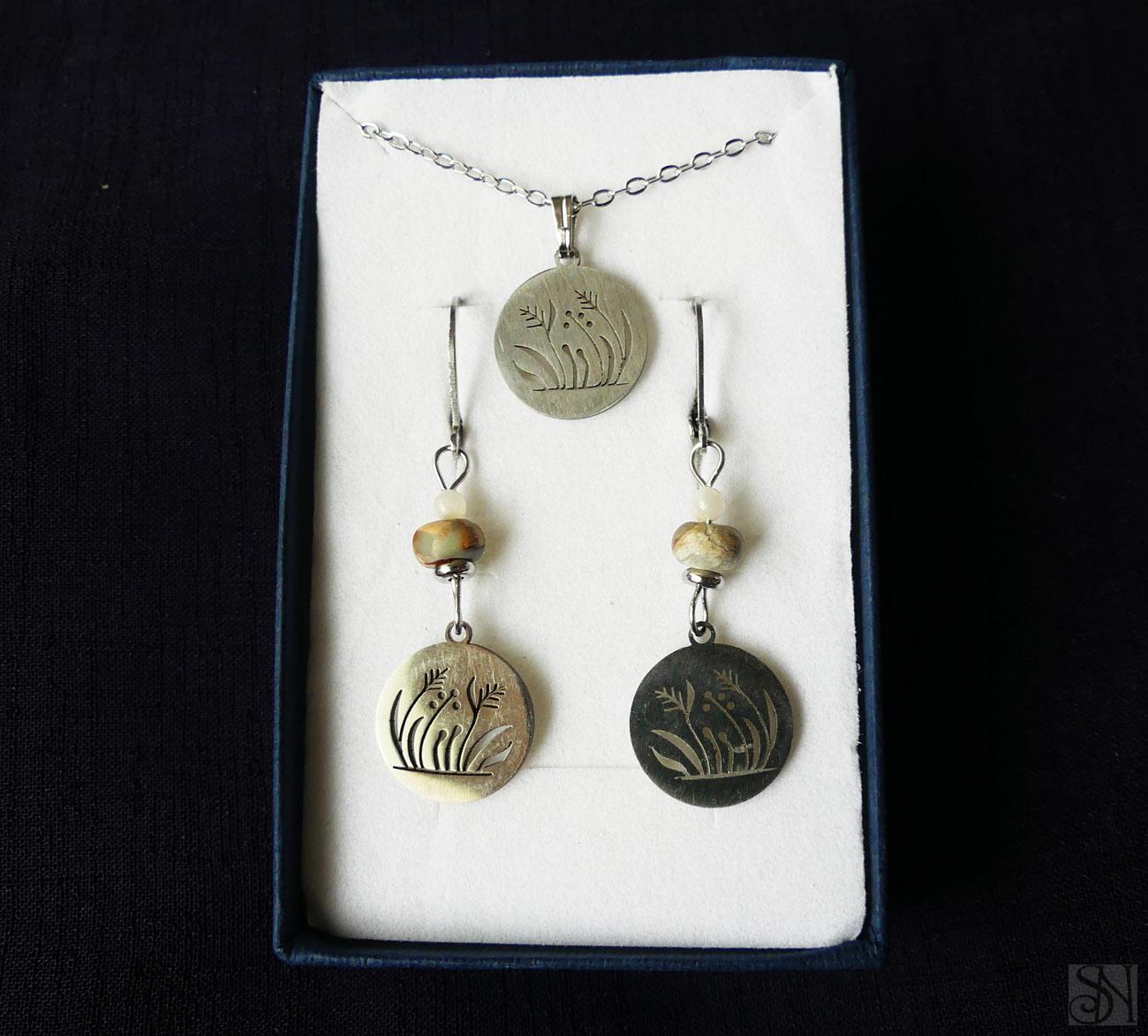 Darčeková sada šperkov - kvety z chirurgickej ocele s jaspisom v krabičke