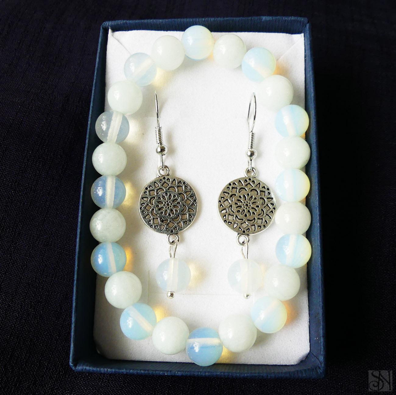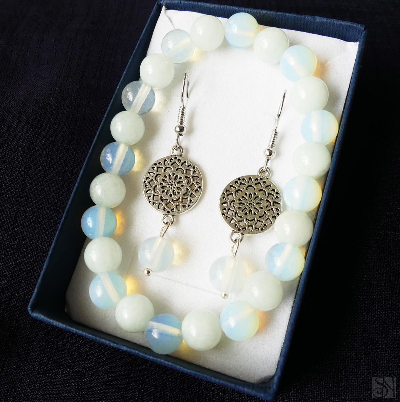 Darčeková sada šperkov z chirurgickej ocele s opalitom a jadeitom v krabičke
