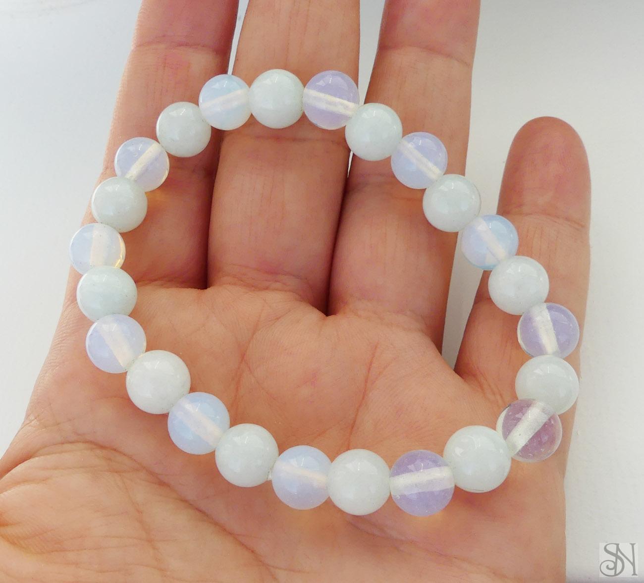 Mesačný kameň - Opalit má účinky rovnaké ako opál, ibaže jemnejšie. Opál podporuje originálne a dynamické tvorivé sily v nás. Je nápomocný pri objavovaní a prejavovaní nášho skutočného Ja. Jedná sa o karmický kameň, ktorý nás učí, že všetko čo vyšleme sa nám vráti späť. Opál je zároveň aj ochranný kameň. Umožňuje správne pochopenie vlastnej hodnoty a porozumieť svojím možnostiam a schopnostiam. Povzbudzuje umelecké sklony. Podporuje nás k prejavom pozitívnych citov. Vyvoláva vernosť, loajalitu, spontánne konanie.Liečebné účinky: Opál posilňuje vôľu k životu. Lieči Parkinsonovu chorobu, infekcie, horúčky, čistí krv, ľadviny, reguluje hladinu inzulínu, pomáha pri pôrode, je blahodárny na oči.