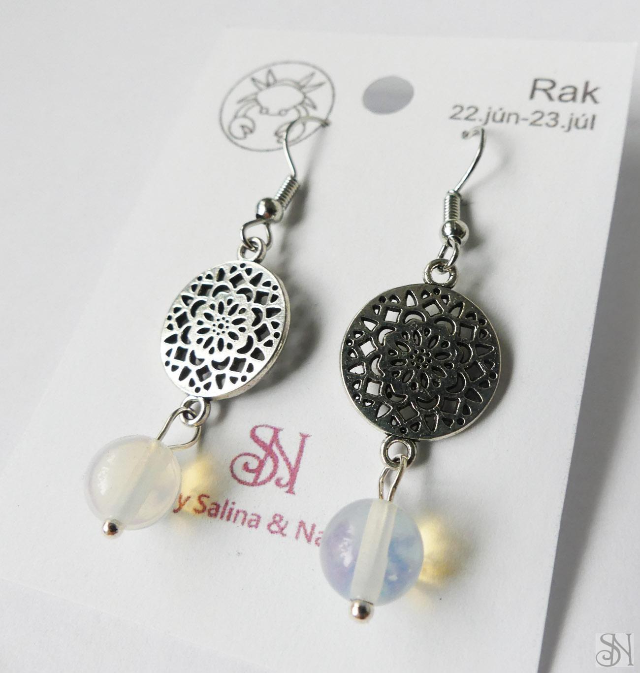 Handmade visiace náušnice z liečivého minerálu opalitu. Náušnice sú doplnené kovovými komponentami z chirurgickej ocele preto sú vhodné aj pre alergikov.