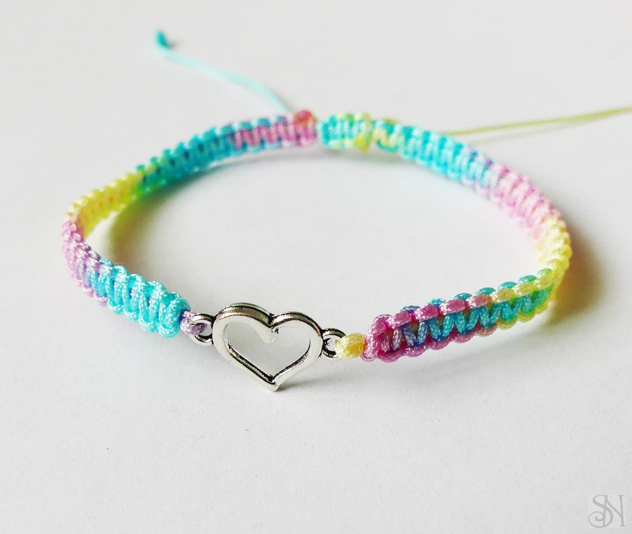 Úvod » Náramky » Dúhový makramé náramok so srdiečkom
