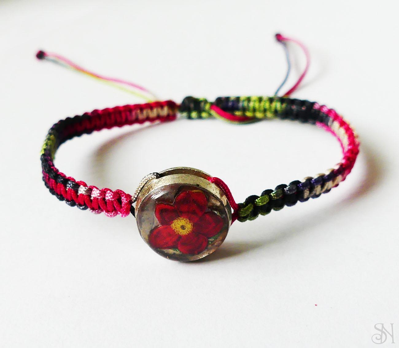 Úvod » Náramky » Farebný makramé náramok bordový kvet
