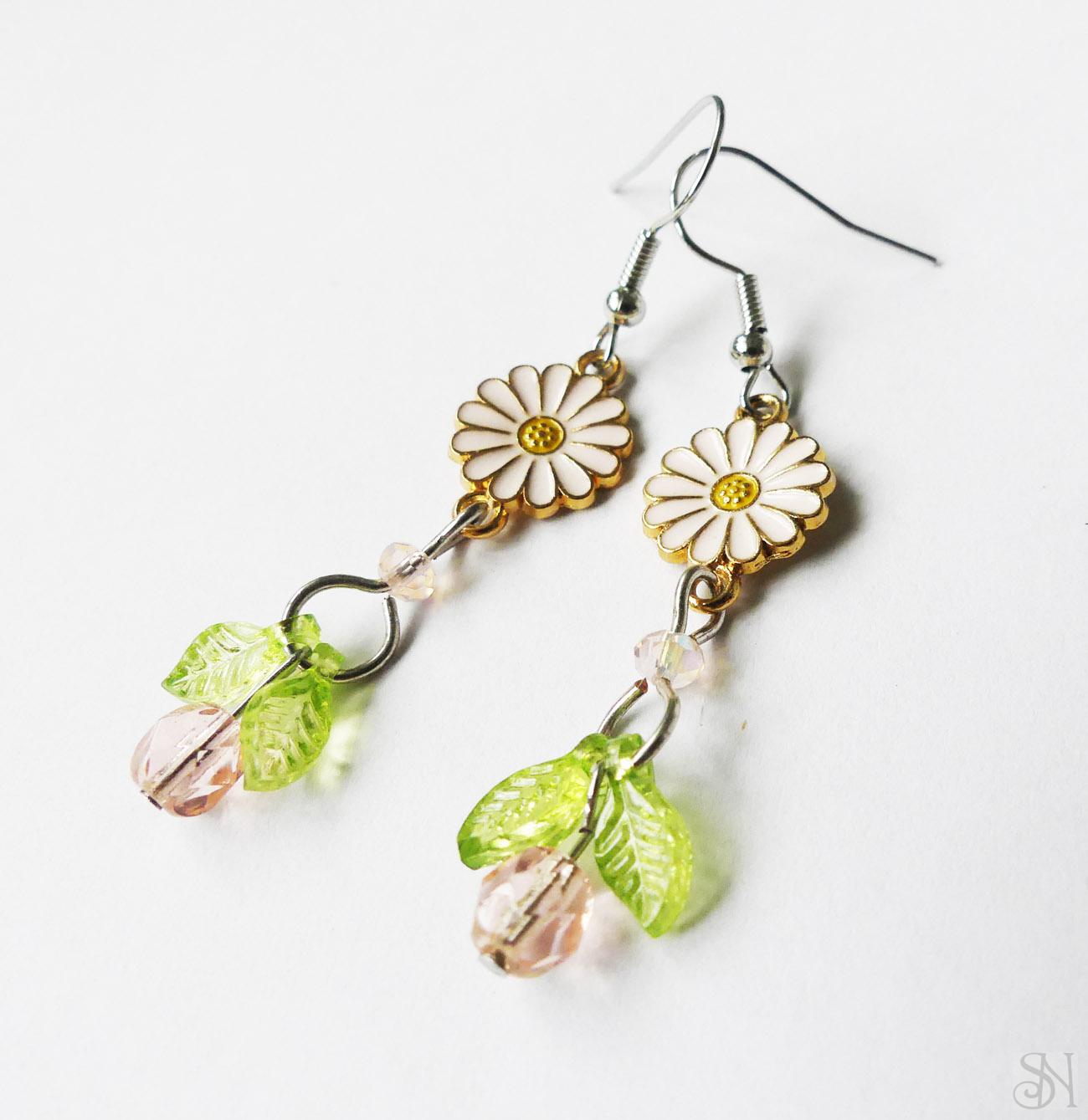Ručne robené kvetinové náušnice z korálok. Háčiky sú z chirurgickej ocele, preto sú vhodné aj pre alergikov.