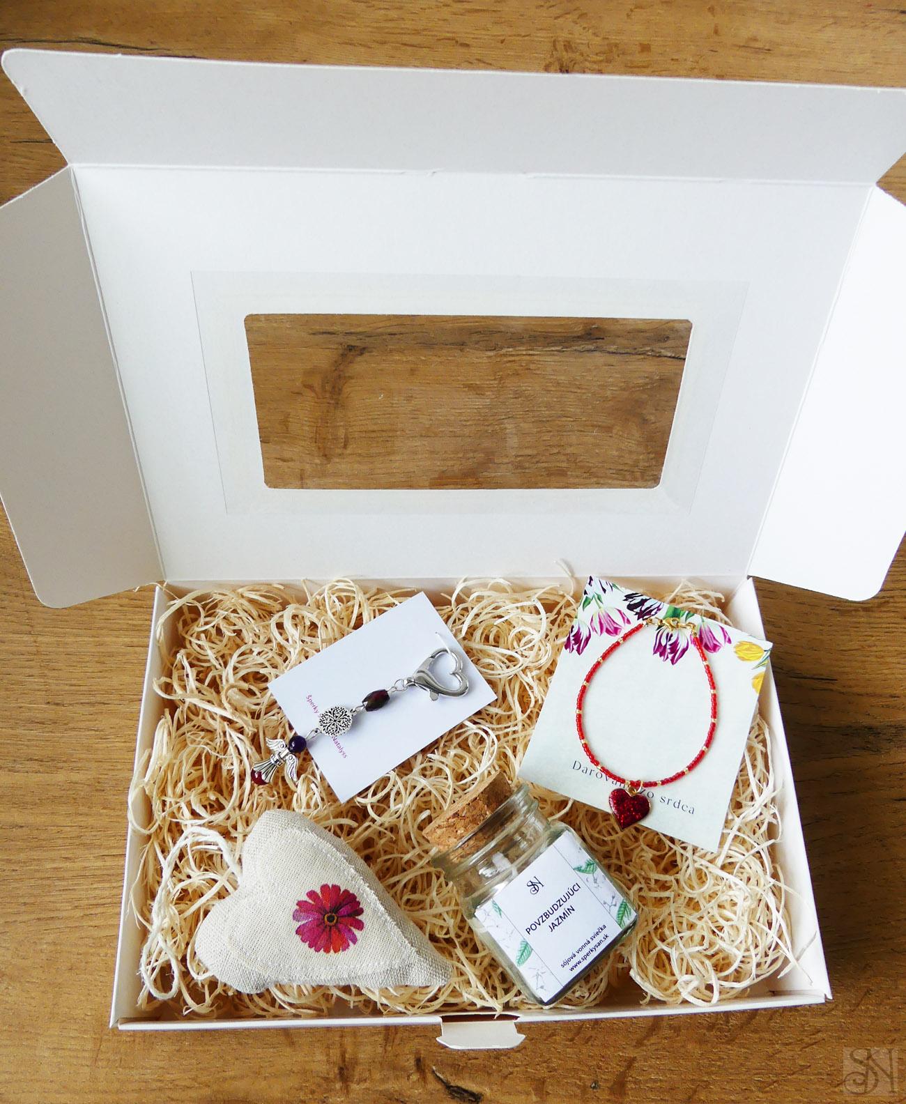 Handmade darčekový box s kľúčenkou, náramkom a sviečkou a dekoráciou