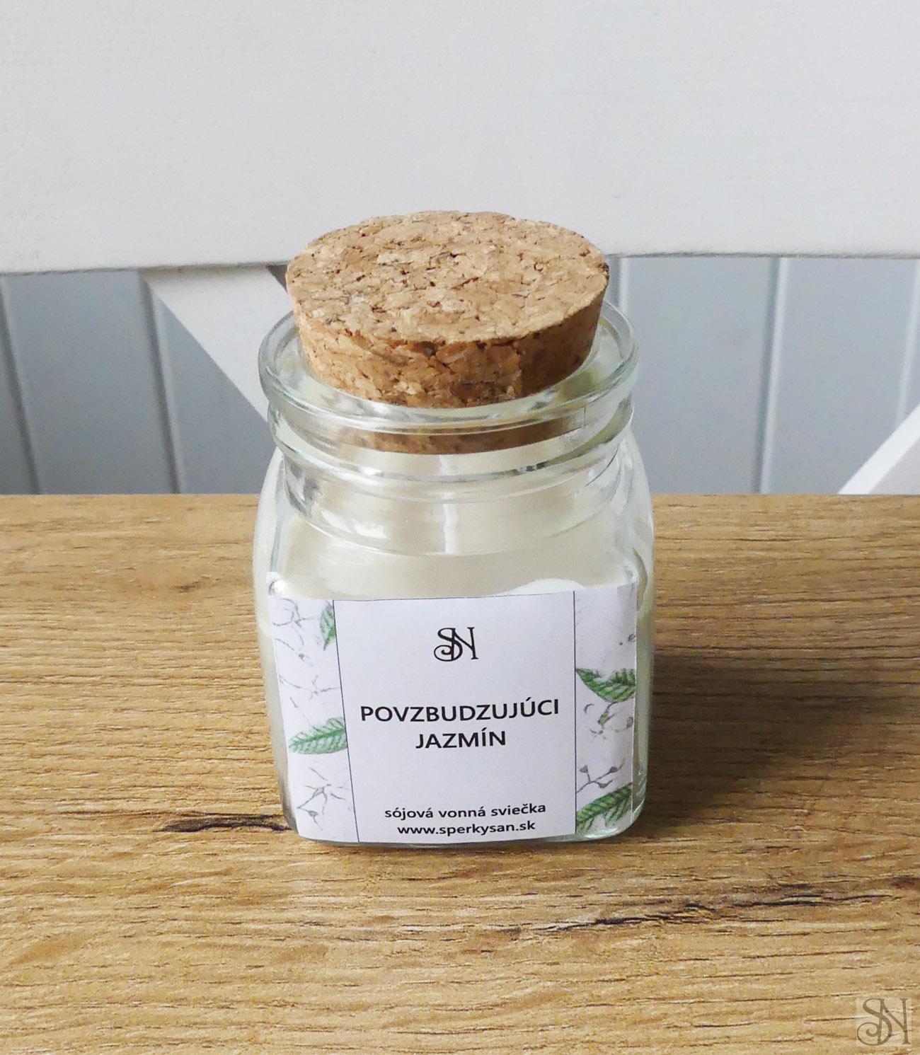 Sójová sviečka s vôňou jazmínu v sklenenej nádobe s korkovým uzáverom. Sójové sviečky sú vegánske, šetrné k životnému prostrediu, keďže sú prírodné a horia 2 krát dlhšie než parafínové sviečky. Najväčšou výhodou sójového vosku je, že je netoxický, neuvoľňuje pri horení škodlivé látky ani karcinogény a je vhodný aj pre alergikov. Veľkosť: 7 x 4,5 cm, cca 60 ml vosku.