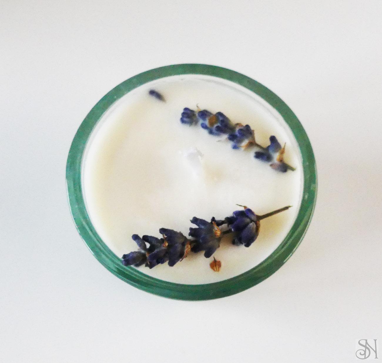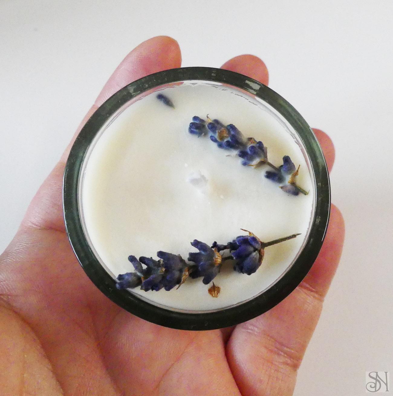 Sójová sviečka s vôňou levandule v sklenenej nádobe. Dekorovaná je sušenými kvetmi levandule. Sójové sviečky sú vegánske, šetrné k životnému prostrediu, keďže sú prírodné a horia 2 krát dlhšie než parafínové sviečky. Najväčšou výhodou sójového vosku je, že je netoxický, neuvoľňuje pri horení škodlivé látky ani karcinogény a je vhodný aj pre alergikov. Veľkosť: priemer 5 cm, výška 3 cm, 29 g vosku.