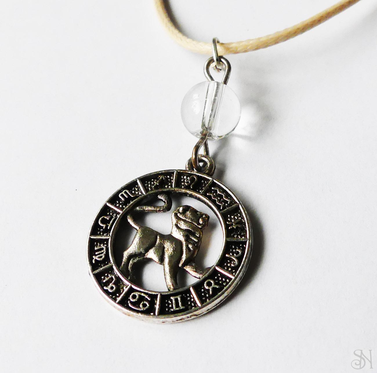Ručne vyrobený prívesok z korálky liečivého kameňa krištálu a bižutérneho komponentu so znamením lev. Kovové komponenty sú bez obsahu niklu. Prívesok posielame zavesený na šnúrke. Velkosť cca 3 cm.
