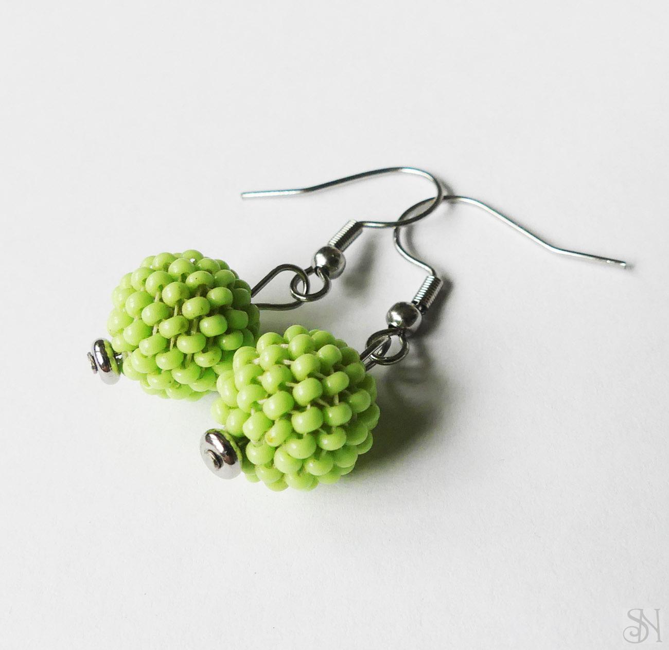 Handmade zelené korálkové náušnice - chirurgická oceľ