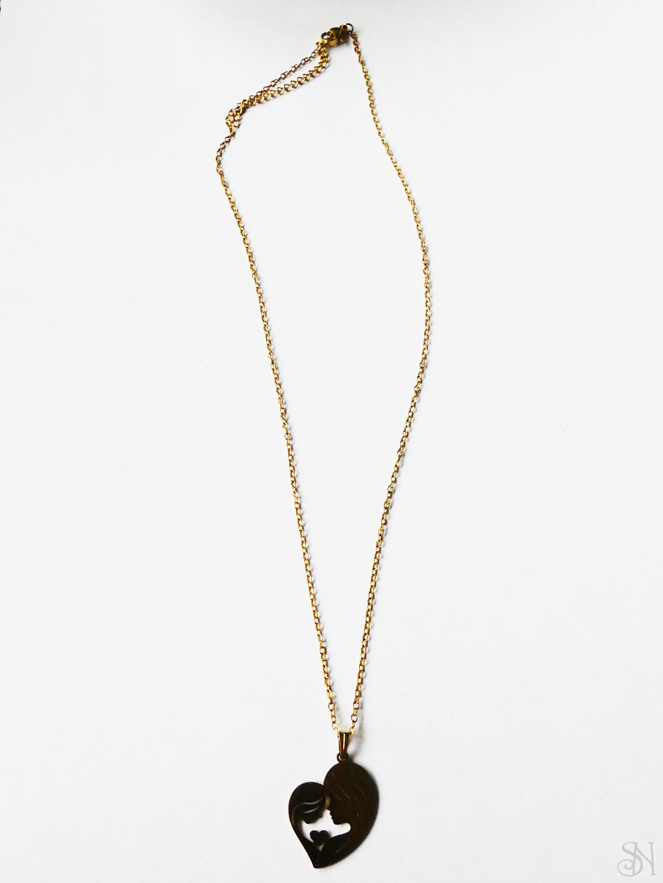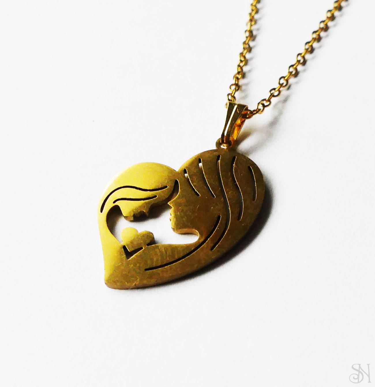 Zlatý zapínací náhrdelník s príveskom s motívom matky. Kovové komponenty sú z chirurgickej ocele v zlatej farbe. Zapínanie je na karabínku.