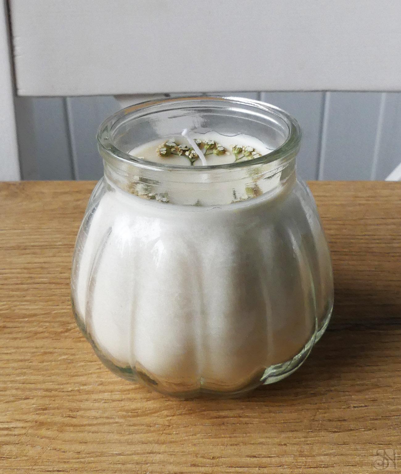 Sójová sviečka s vôňou jazmínu v sklenenej nádobe. Sójové sviečky sú vegánske, šetrné k životnému prostrediu, keďže sú prírodné a horia 2 krát dlhšie než parafínové sviečky. Najväčšou výhodou sójového vosku je, že je netoxický, neuvoľňuje pri horení škodlivé látky ani karcinogény a je vhodný aj pre alergikov. Veľkosť: Sviečka obsahuje cca 140 g vosku