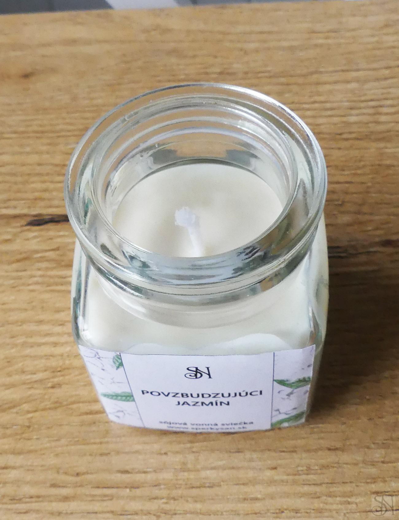 Sójová sviečka s vôňou jazmínu v sklenenej nádobe s korkovým uzáverom. Sójové sviečky sú vegánske, šetrné k životnému prostrediu, keďže sú prírodné a horia 2 krát dlhšie než parafínové sviečky. Najväčšou výhodou sójového vosku je, že je netoxický, neuvoľňuje pri horení škodlivé látky ani karcinogény a je vhodný aj pre alergikov. Veľkosť: 7 x 4,5 cm, cca 60 ml vosku.