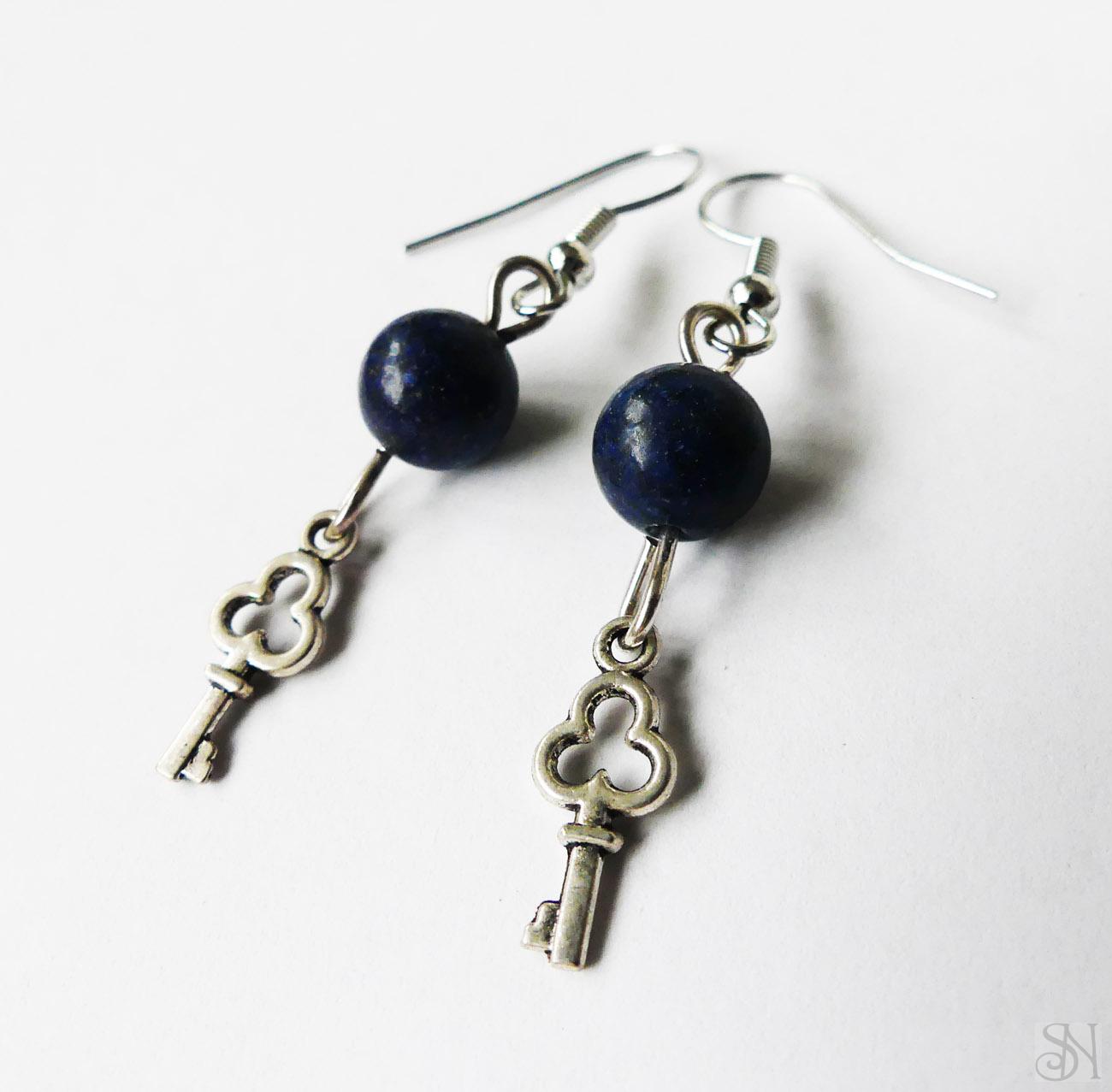 Handmade visiace náušnice z liečivého minerálu lapisu lazuli. Náušnice sú doplnené háčikmi z chirurgickej ocele preto sú vhodné aj pre alergikov.