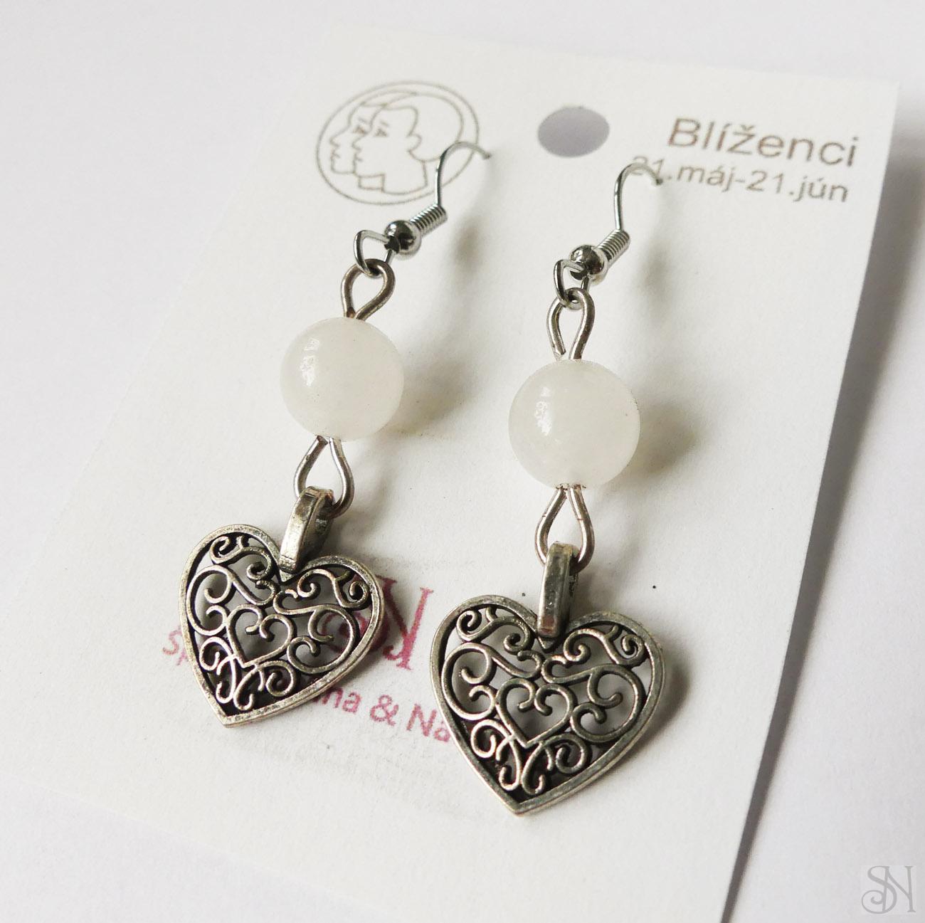 Náušnice srdcia z liečivého kameňa ruženínu pre znamenie blíženci