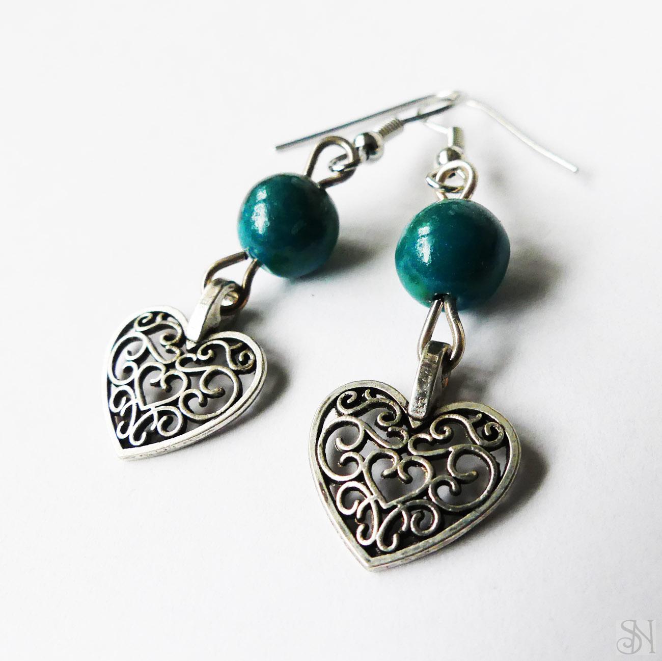 Úvod » Náušnice » Náušnice srdiečka z liečivého kameňa chryzokolu