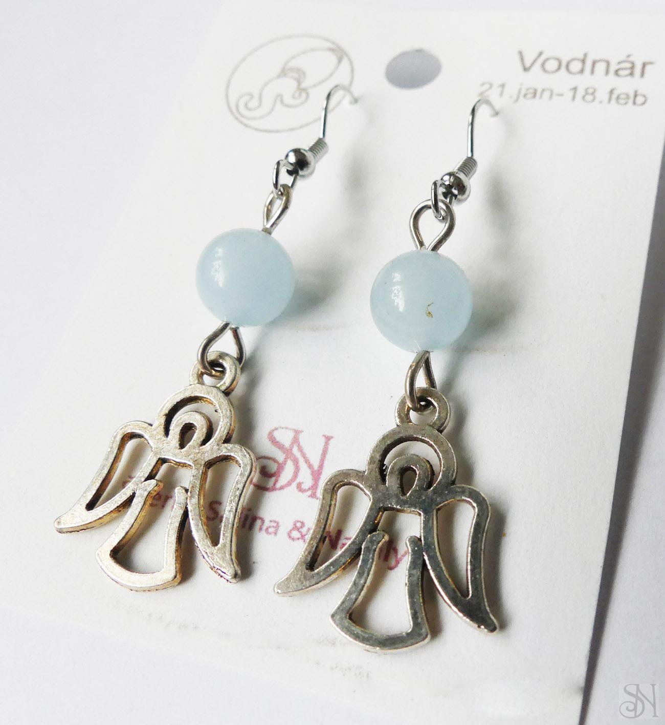 Handmade visiace náušnice anjeliky z liečivého minerálu akvamarínu pre znamenie vodnára. Náušnice sú doplnené kovovými komponentami z chirurgickej ocele preto sú vhodné aj pre alergikov.