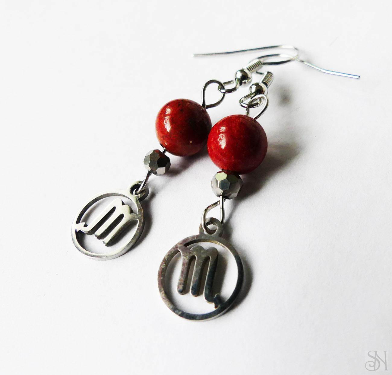 Handmade visiace náušnice z liečivého minerálu jaspisu červeného pre znamenie škorpióna. Náušnice sú doplnené kovovými komponentami z chirurgickej ocele, preto sú vhodné aj pre alergikov.