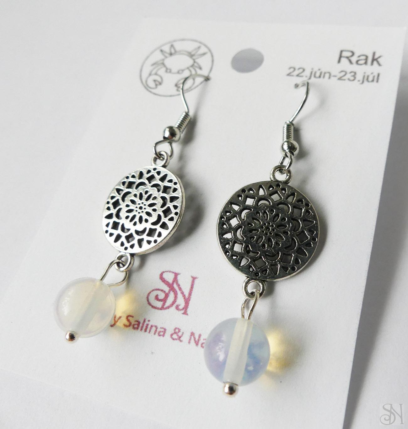 Handmade korálkové náušnice z liečivého kameňa opalitu pre znamenie raka