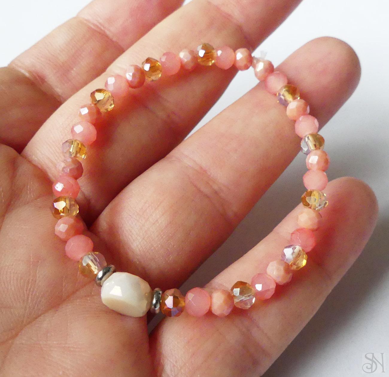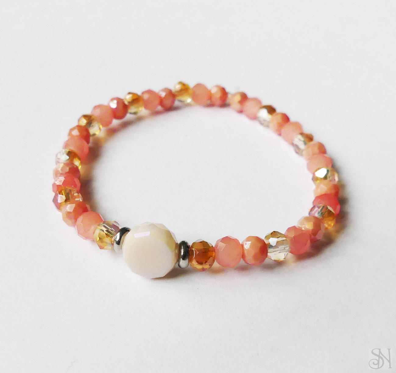 Handmade oranžový náramok na gumičke zo sklenených korálok.