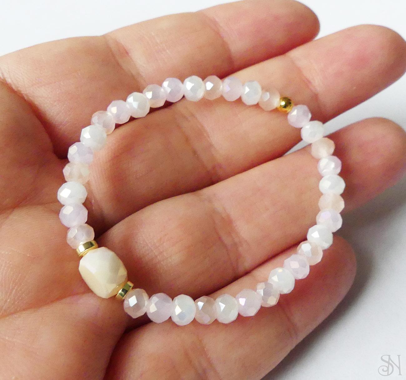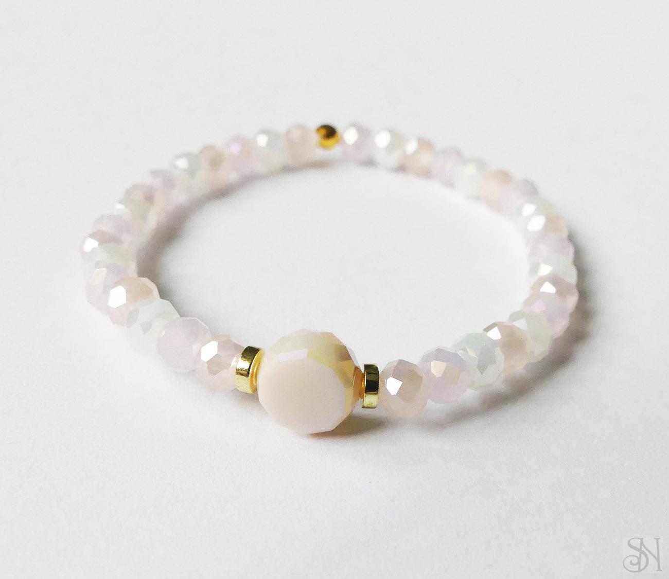 Handmade ružový náramok na gumičke zo sklenených korálok.